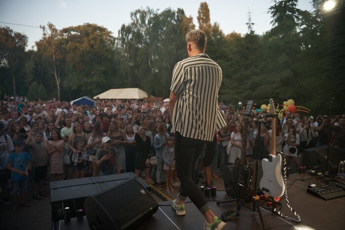 А поблизу входу у центральний парк культури та відпочинку імені Лесі Українки відбувалося грандіозне дійство, за яким вже так засумувала молодь. Спочатку своєю творчістю радували виконавці класичної та популярної музики, хореографічними здібностями захоплювали юні зірочки з танцювальної студії UDC, вражали своєю майстерністю вихованці спортивного клубу козацьких бойових мистецтв «Герць». Ближче до вечора запалювали аудиторію гурти «Solar Blooms» та «One light inside». Неперевершену атмосферу створили також шоу барабанів «Garage Drum Show».Неочікувано затребуваним у глядачів стало народне караоке. Змагання видалися видовищними та запеклими.