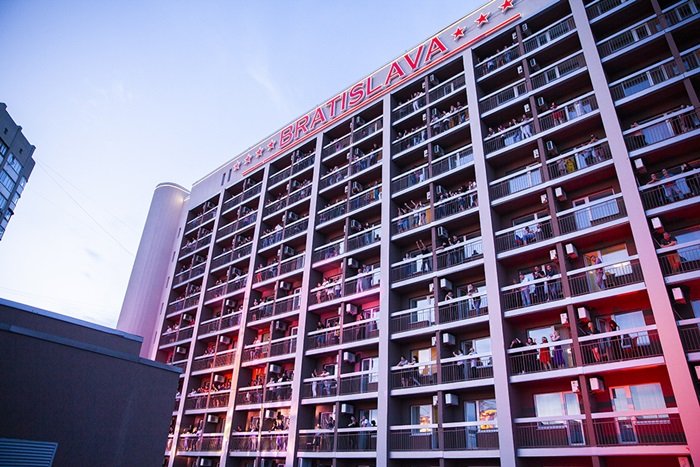 Глядачі дивилися його з номерів готелю Bratislava