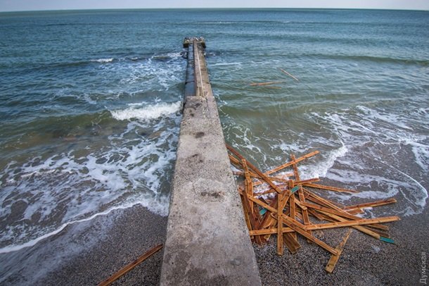 Шторм завдав відчутних втрат відразу декільком одеським пляжам. Водою змило піщаний насип і в деяких випадках дерев'яні настили.