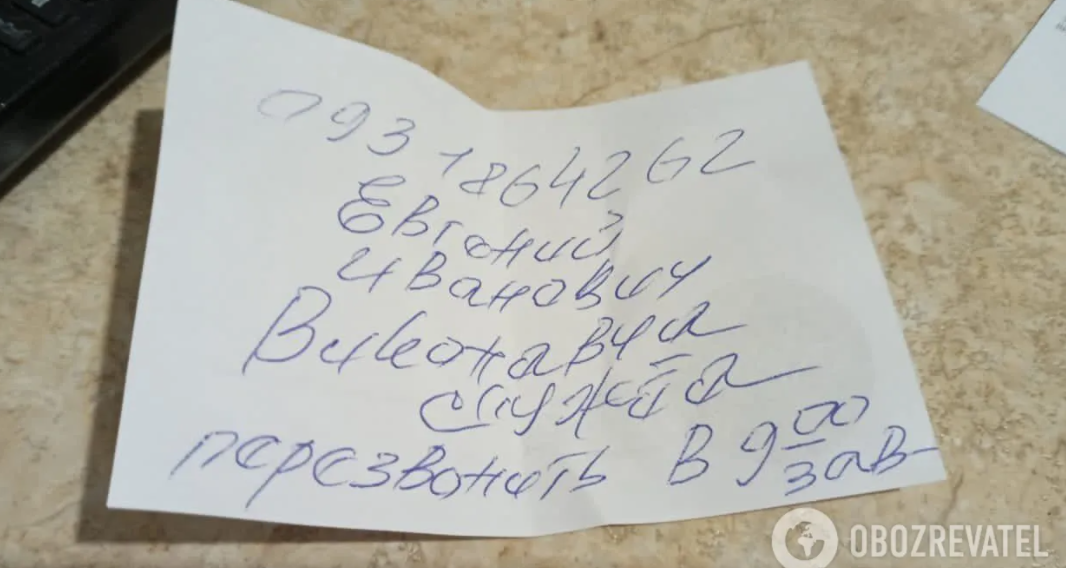 На невеликому клаптику паперу було вказано номер телефону, ім’я та по батькові власника номера і прохання «передзвонити завтра о 9:00».