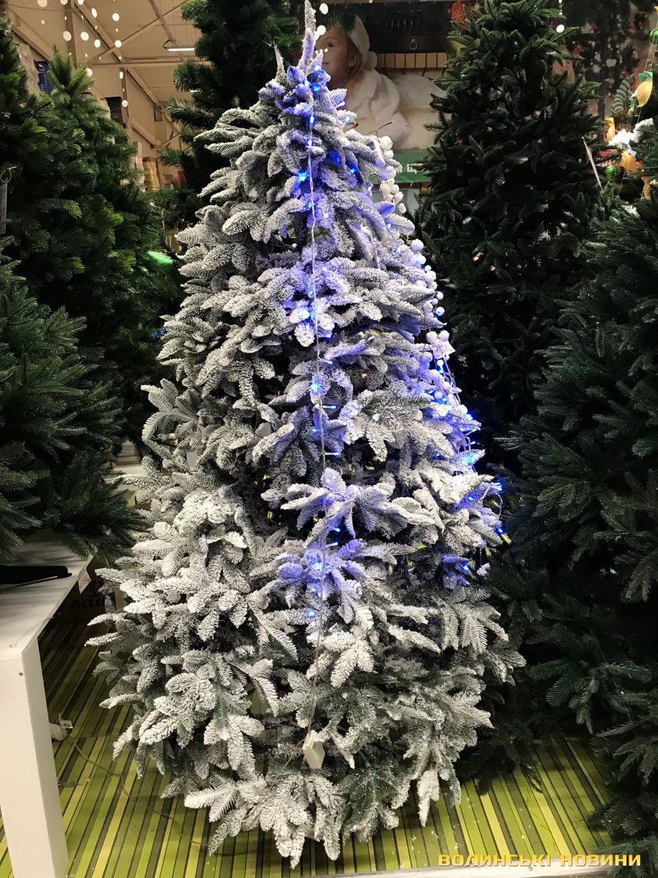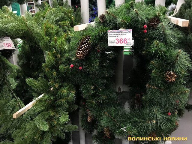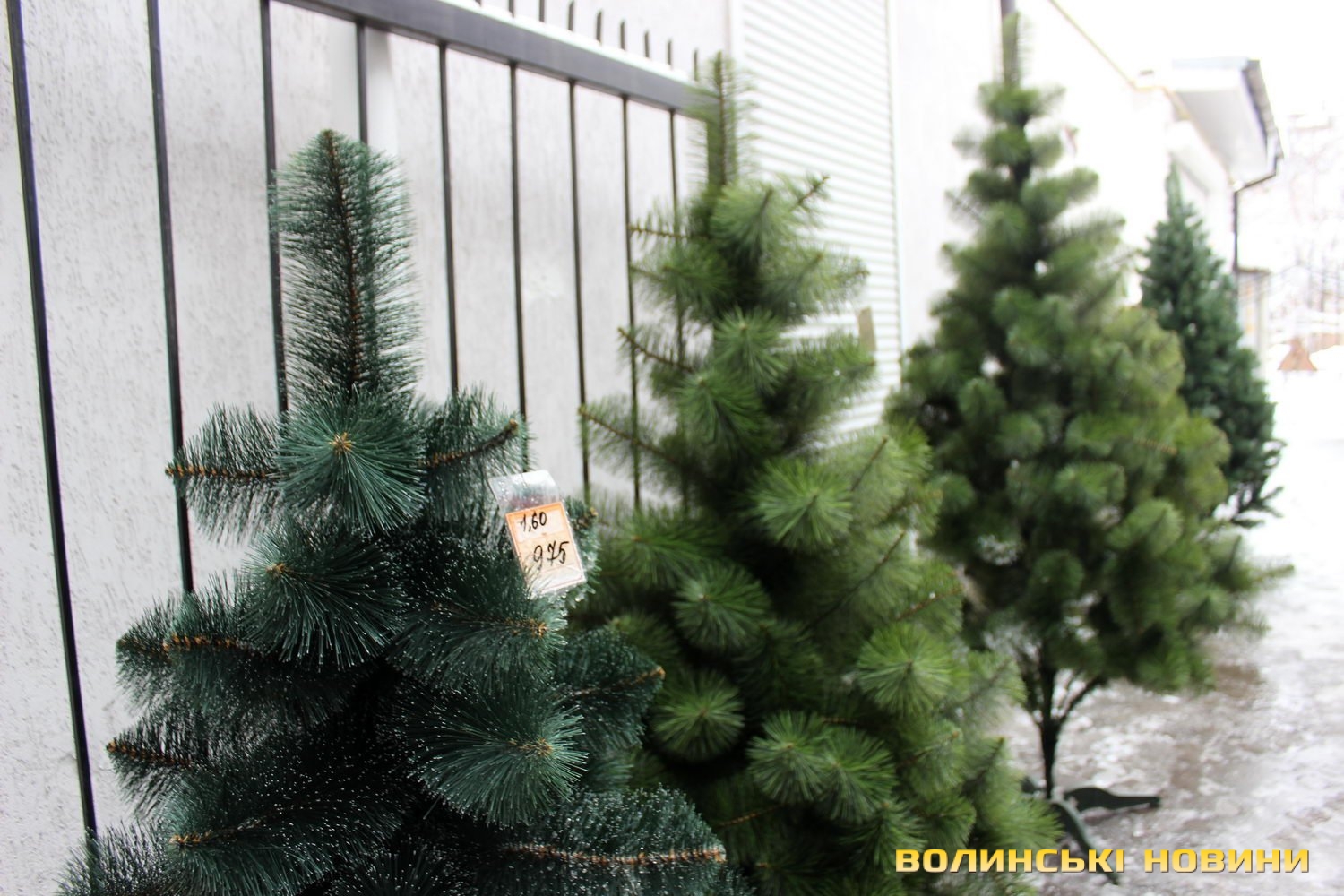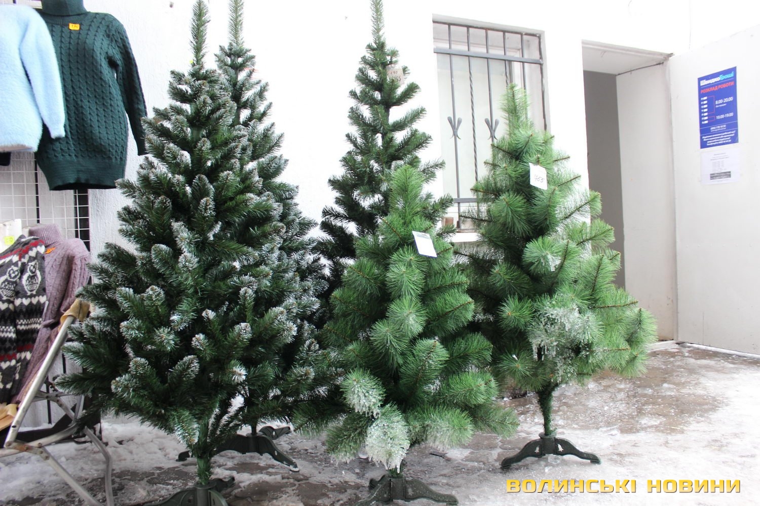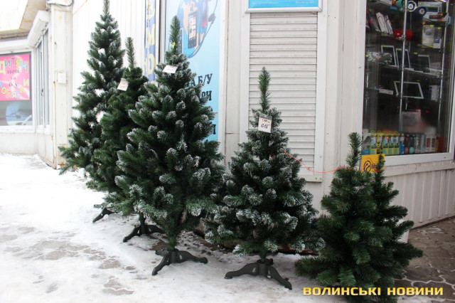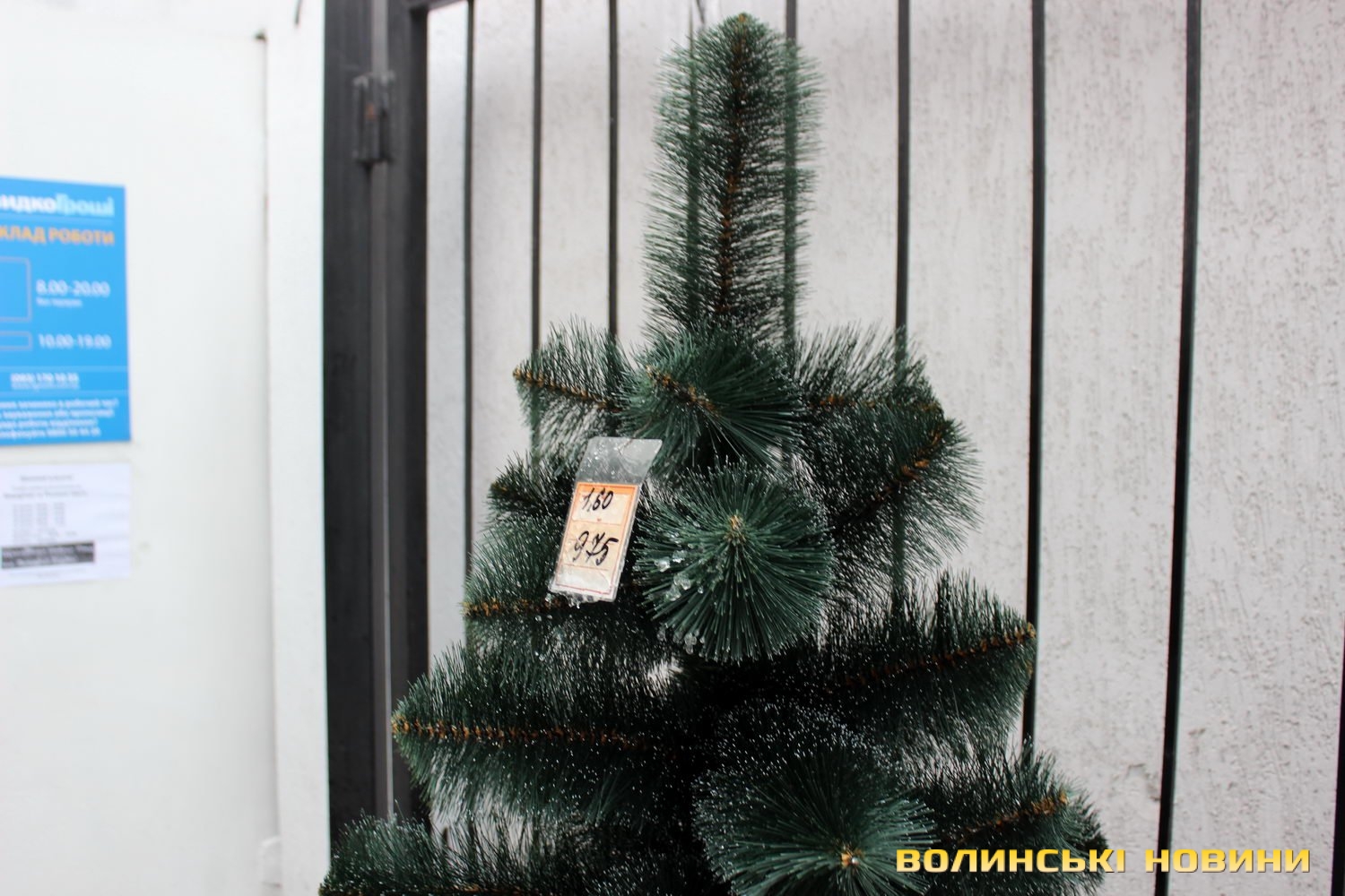 До прикладу, штучні ялинки від 1,1 до 2,1 метра тут коштують від 615 до 1265 гривень. Як пояснюють продавці, ціна на новорічну красуню варіюються залежно від величини деревця, його забарвлення та матеріалу виконання.Відзначимо, що лучани, які не хочуть витрачати кругленьку суму на головний атрибут новорічно-різдвяних свят, можуть придбати символічну ялиночку заввишки 25 сантиметрів за 50 гривень.Натомість у торгових центрах міста за штучну вічнозелену красуню заввишки від одного метра доведеться викласти від близько 900 гривень. А двометрова засніжена ялинонька коштує майже 6 тисяч гривень, своєю чергою лита триметрова ялинка вартує близько 8 тисяч гривень.За віночки на двері зі штучних матеріалів доведеться викласти від 150 до 800 гривень.