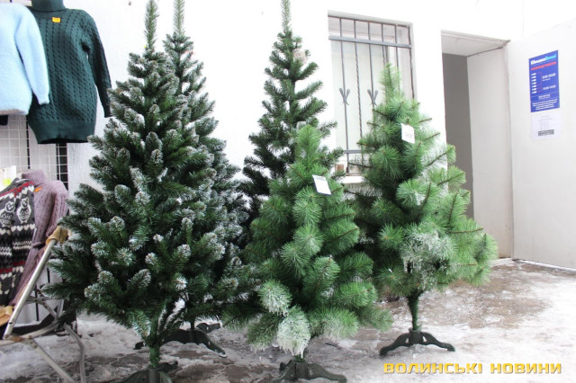 Для тих, хто віддає перевагу новорічним деревцям зі штучних матеріалів, зауважимо, що поруч із пунктом продажу живих ялинок і сосон навпроти Центрального ринку можна купити штучні.