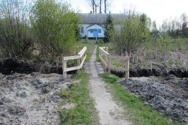 Далі рушаємо до однієї з освітніх установ, де виховуються та зростають місцеві малюки, – Штунського ДНЗ. Виритий перед будівлею рів, у якому стоїть каламутна вода, та невеличка дерев’яна кладка, що хитається під ногами, – такий шлях щодня долають батьки разом з двома десятками малюків, які відвідують садок «Веселі дзвіночки». Як згодом з’ясувалося, саме цей рів нібито тримає «болото, яке підступає до будівлі». Ще віддаля помітно, що штунський дитсадок, зведений у далекому 1944 році як сільська школа, нині більше схожий на таку собі шевченківську хатину з пластиковими «євровікнами».
