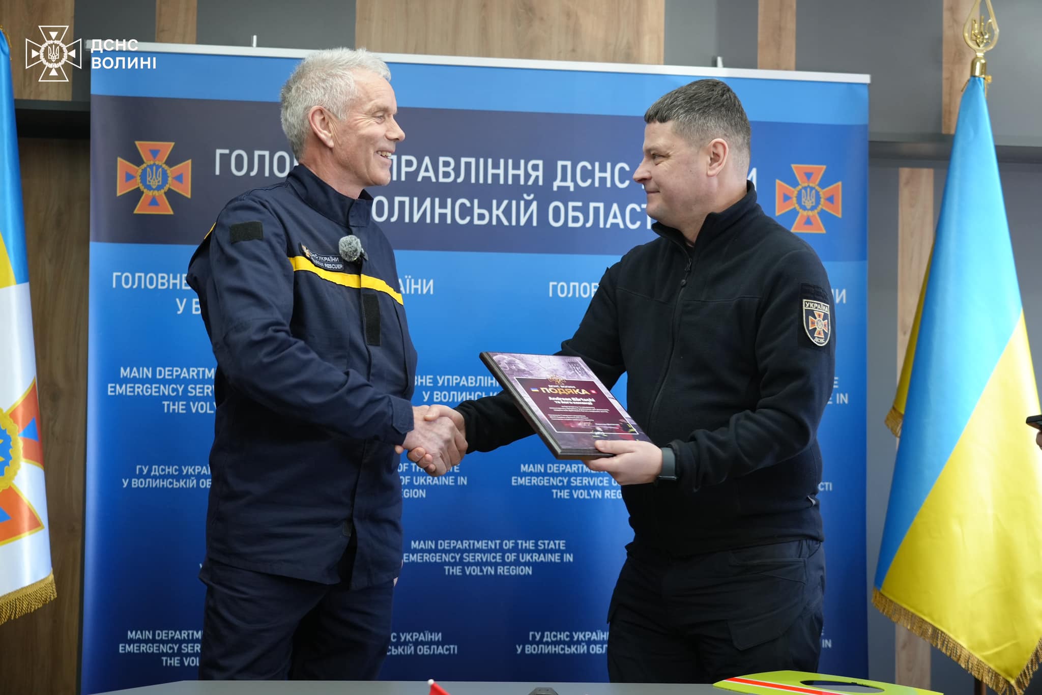 Начальник ГУ ДСНС у Волинській області Мирослав Дем'янчук подякував Андреасу Берчі та його команді за неоціненну підтримку, завдяки якій врятовано безліч життів. Він вручив подяку за багаторічну допомогу українським рятувальникам.