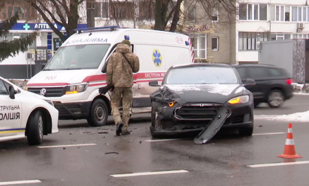 «Транспортний засіб Tesla рухався головною смугою, зайняв крайню ліву смугу. Транспортні засоби зупинилися, щоб надати перевагу автомобілю екстреної медичної допомоги. Швидка рухалася без проблискових маячків, не надала перевагу транспортному засобу Tesla і відбулося зіткнення. Водія авто екстреної медичної допомоги госпіталізовано. Йому надають допомогу. Попередньо в нього – закрита черепно-мозкова травма. Інших постраждалих немає», – прокоментував лейтенант поліції Юрій Оляніцький.