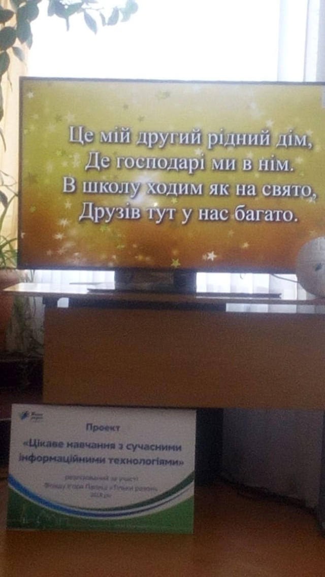 В рамках проекту школа поповнилася новенькими телевізором, ноутбуком та дев’ятьма дошками. Представник Фонду Ігоря Палиці «Тільки разом» Людмила Марадевич зазначила, що проблеми освітніх закладів залишаються пріоритетним напрямком роботи і для депутатів-укропівців різних рівнів, і Фонду Ігоря Палиці «Тільки разом».