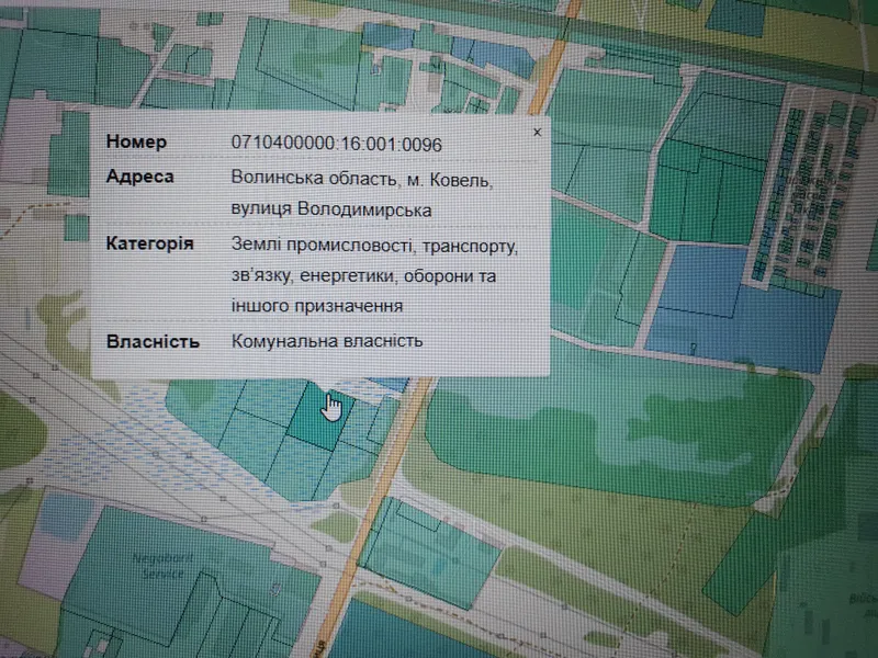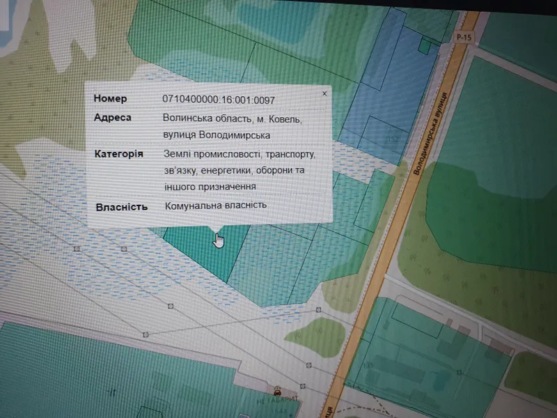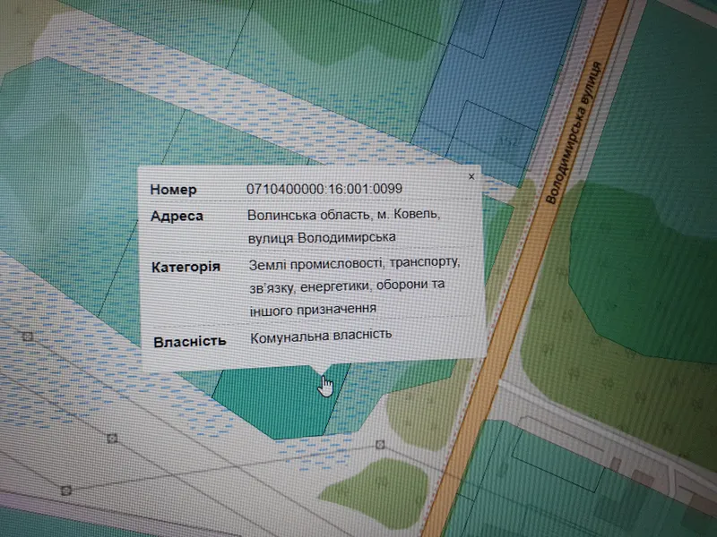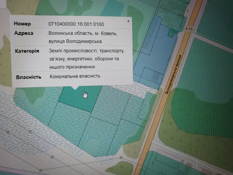 - земельну ділянку у власність площею 0,0983 га на вулиці Луцькій, 15 у Ковелі, кадастровий номер – 0710400000:27:001:0083. Категорія земель – землі промисловості, транспорту, електронних комунікацій, енергетики, оборони та іншого призначення, вид цільового призначення – для розміщення та експлуатації основних, підсобних і допоміжних будівель та споруд підприємств переробної, машинобудівної та іншої промисловості. Наявні інженерні мережі – електропостачання, газопостачання.