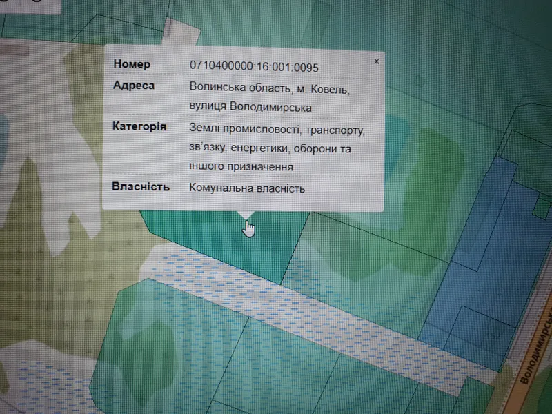 - земельну ділянку у власність площею 0,0983 га на вулиці Луцькій, 15 у Ковелі, кадастровий номер – 0710400000:27:001:0083. Категорія земель – землі промисловості, транспорту, електронних комунікацій, енергетики, оборони та іншого призначення, вид цільового призначення – для розміщення та експлуатації основних, підсобних і допоміжних будівель та споруд підприємств переробної, машинобудівної та іншої промисловості. Наявні інженерні мережі – електропостачання, газопостачання.
