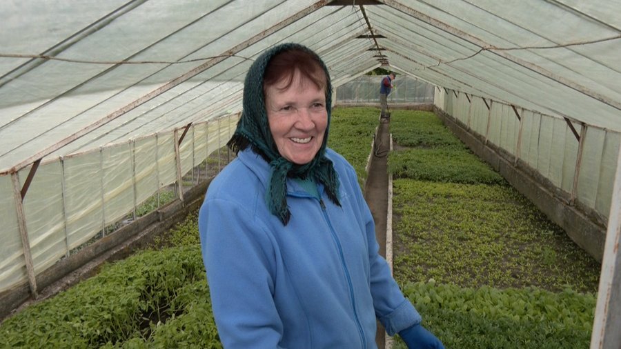 «Я пропоную ще нам по моноколесу взяти, щоб отак їздити, але трохи затратно, бо територія велика і нерівна», – жартує наречена Іллі Марія.Загалом три покоління родини вирощують городину, квіти та ягоди в 11 теплицях на загальній площі орієнтовно 13 соток, каже Ілля. Розпочали сімейний бізнес 40 років тому бабуся з дідусем, коли втратили роботу.«Ми з дідом виросли в селі. Батьки нас привчили до праці змалку. І гуси пасли, і корови, і все на грядці. Ми так звикли та любимо таке. Пенсія зовсім мала, у чоловіка 3300, в мене 3000. І якби не оце допоміжне, просто не уявляю, як ми жили б», — каже 72-річна Валентина Михальчук.