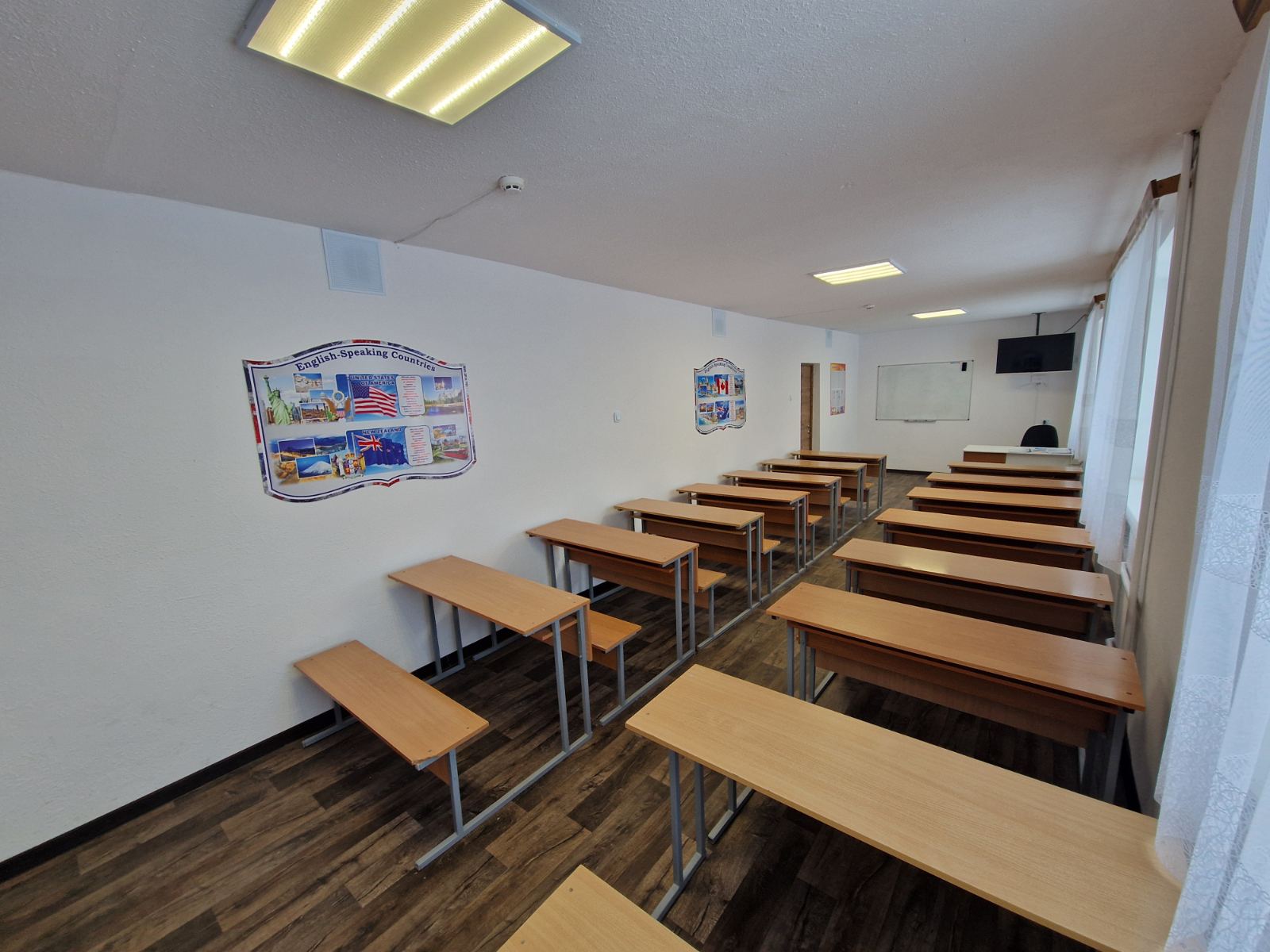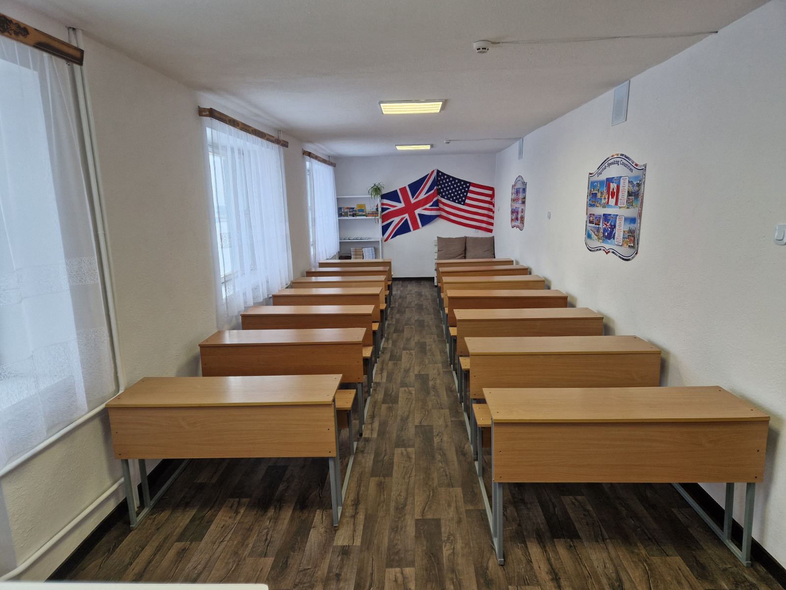 У приміщенні вирівняли стіни, стелю, поштукатурили та пофарбували стіни, залили нову підлогу, поклали ламінат, встановили нові двері, замінили старе освітлення на сучасні енергозберігальні лампи, придбали частину меблів та обладнання, провели інтернет, облаштували для учнів куточок для відпочинку на перервах.Кабінет англійської мови, який відремонтувала родина Усіків