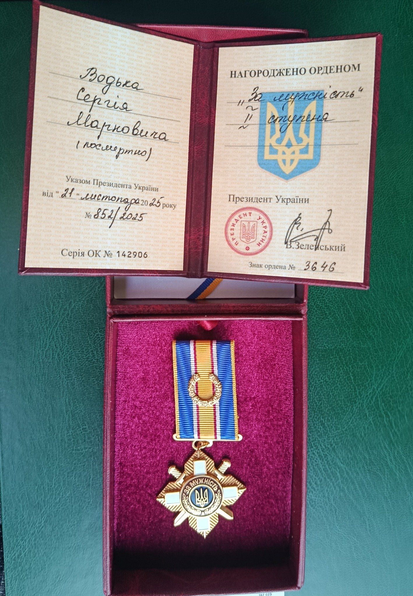 Ордена «За мужність» ІІ ступеня посмертно удостоєно штаб-сержанта Сергія Водька з Хряська. Високу державну нагороду вручено дружині Ганні Петрівні та доньці Соломії.