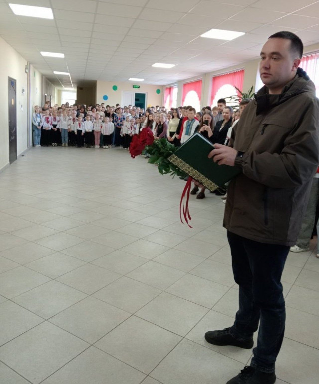 Урочиста церемонія відбулася в Цмінівському ліцеї. Нагороду родині Героя передав молодший лейтенант Камінь-Каширського районного територіального центру комплектування та соціальної підтримки Андрій Дубровський.