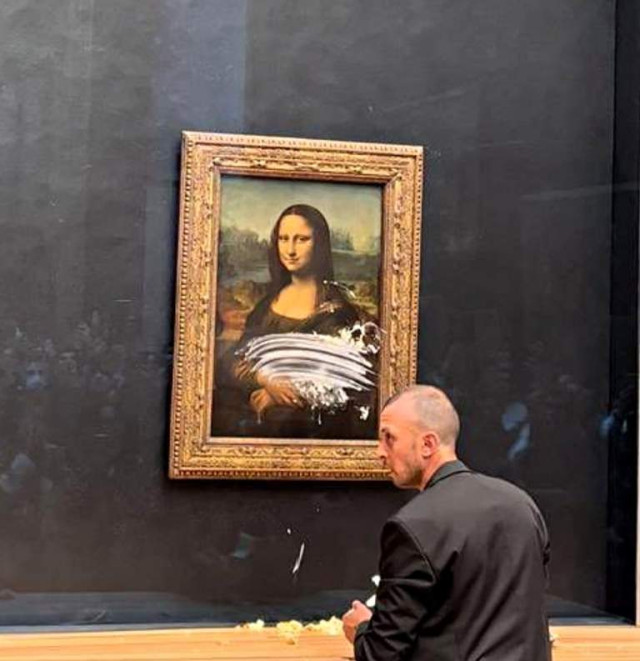 Невідомий чоловік вчинив чи то акт вандалізму, чи то екологічну акцію у паризькому Луврі. Він забруднив тортом легендарну «Мону Лізу» Леонардо да Вінчі.