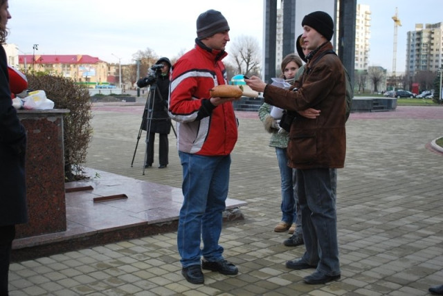 Одинокими глядачами акції стали діти, що проходили повз протестуючих, та міліціонер, котрий мав забезпечувати порядок. За словами учасників акції, органи місцевої влади були попереджені про проведення.