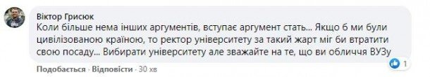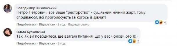 Проте користувачі соцмереж не розділили його піднесений настрій. Савчуку прямо заявили, що все його ректорство – це суцільний недолугий жарт. А сексистські висловлювання – зовсім не рівень ректора.Акцент на статі аж ніяк не робить честі ректору та показує негативне обличчя вузу. На це звернули увагу й інші користувачі мережі.Проте на цьому хвиля критики не стихла. Савчук, який балотується в депутати облради від «Слуги народу», розмістив в соцмережі логотип партії, що спровокувало хвилю обурення. Йому пригадали і політичну проституцію, та й інтелектуальний рівень.