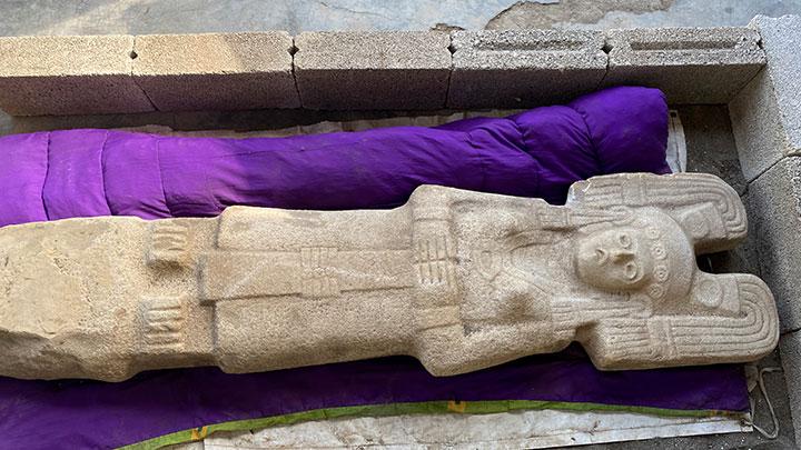 В Ізраїлі, як і слід було очікувати, найкраще розвивається так звана «біблійна археологія». Хоча цьогоріч траплялися знахідки і не з біблійної епохи – наприклад, крупний центр виноробства Візантійської доби – але найцікавішими все ж стали артефакти з Юдейської пустелі на західному узбережжі Мертвого моря.У так званій «Печері жахів» (названій так після знахідки 40 скелетів шістдесят років тому) ізраїльські археологи знайшли давній сувій із фрагментами пергаменту. На них записані грецькою мовою біблійні тексти, а також слово «Бог» на івриті. Швидше за все їх залишили юдеї, які втекли до пустелі після невдалого повстання проти Римської імперії. Це перший біблійний сувій, який знайшли з 1960-х років.Також у печерах знайшли муміфікований скелет дитини віком у 6 тисяч років, а також великий кошик, якому може бути понад 10 тисяч років. Зазначається, що більшість печер розташовані на глибині 80 метрів і дістатися туди можна, лише спустившись на мотузці. У тамтешніх скелях із печерами у 1960-х роках знайшли відомі «Кумранські літописи», які є найстарішими зі знайдених копій Біблії.6. Мексика: Статуя ацтекської цариці у Веракрусі
