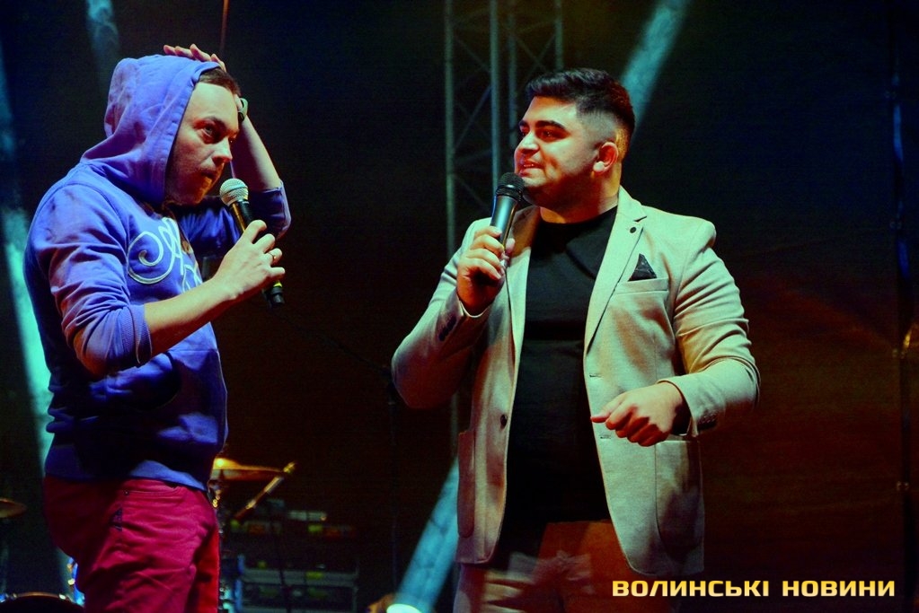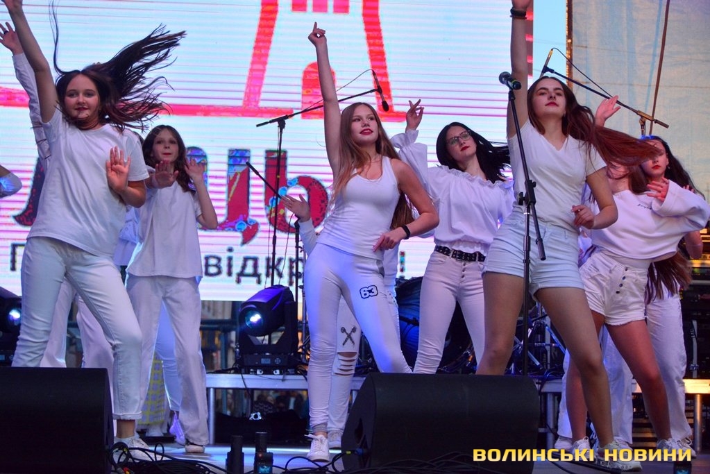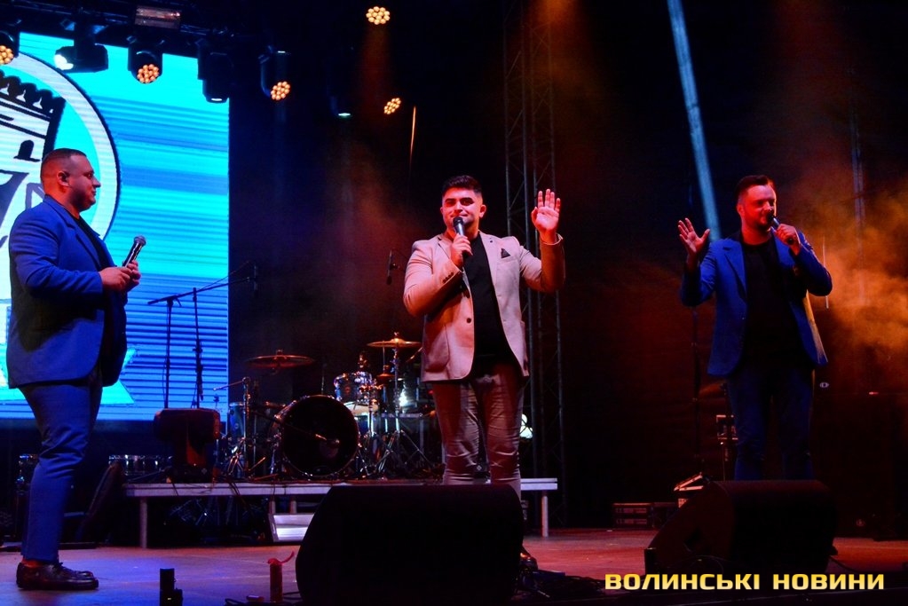 Перед концертною програмою лучан та гостей міста очікувало не менш ефектне шоу. Стронгмен Василь Петрищак спочатку протягнув автомобіль патрульних, а згодом і тягач, продемонструвавши неабияку силу.А концерт відкрив гурт Garage Drum Show, який вигравав барабанні ритми під світові хіти. Згодом на сцену вийшли місцеві співачки: Галина Конах, яка заспівала з лучанами пісню про Луцьк, а також Марія Хурсенко. Остання виконала не лише пісню свого батька В’ячеслава Хурсенка «На острові чекання», а й кілька авторських пісень, підсилившись двома танцівницями.Привітала лучан з Днем міста голова правління Фонду Ігоря Палиці «Тільки разом» Катерина Шкльода, яка зазначила, що у Луцьку їй найкомфортніше і найспокійніше.