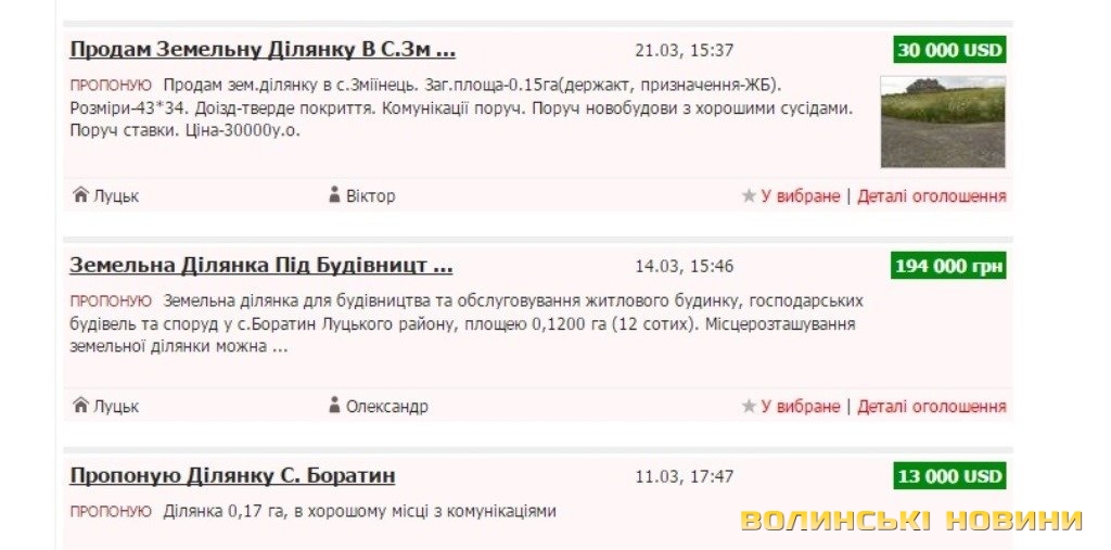 Варто відзначити, що на той час, у 2012 році, купити таку ж земельну ділянку неподалік від Луцька можна було за 100-400 тисяч гривень. І чим ближче було до міста, то сума збільшувалася. Фото оголошень за 2012 рік:Провівши просту калькуляцію, можна підрахувати, що за 12 соток землі, міська казна могла б отримати в десятки разів більше, аніж 53 тисячі гривень.