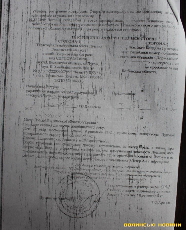 Цікаво відзначити, що пані Богдані - за 70 років і її інтереси представляв племінник, такий собі Олексій Зелінський, начальник відділу управління майном міської комунальної власності Луцької міської ради із 2005-го по 2010 рік.