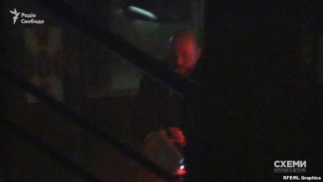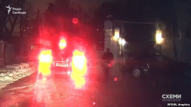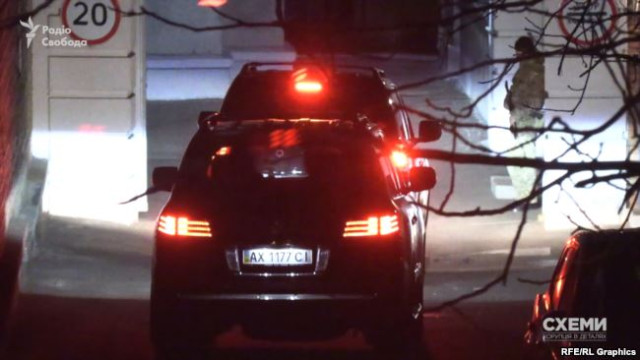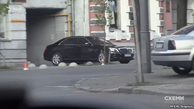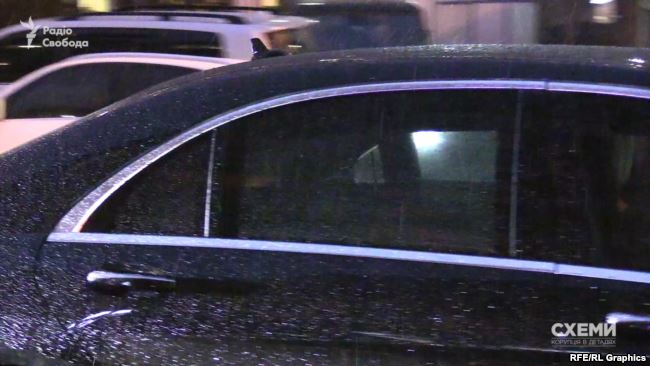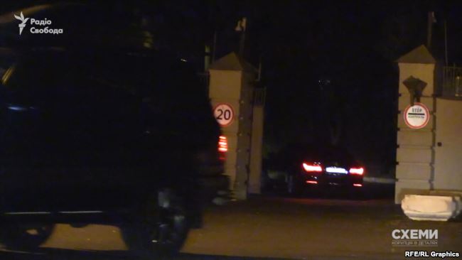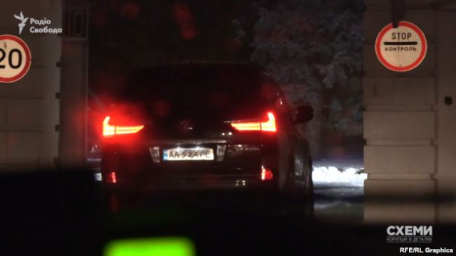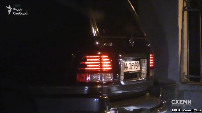 Чоловік пересідає у позашляховик, який на момент заїзду вже чекав у дворі. Ворота до Адміністрації президента відчиняються – і автівку з невідомим пропускають без огляду.