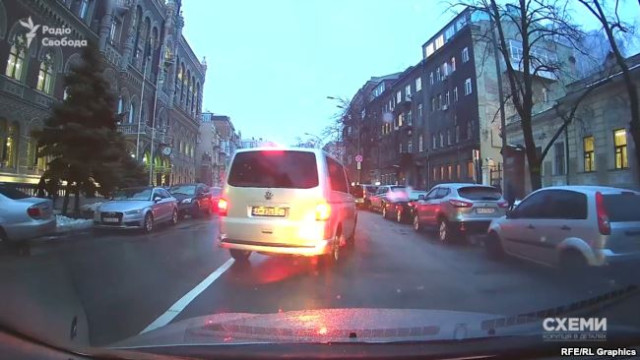 За півгодини кортеж виїжджає з арки – знімальна група «Схем» рушає слідом, але її одразу блокує мікроавтобус. Згодом він ще намагатиметься завадити журналістам і підрізатиме на дорозі.