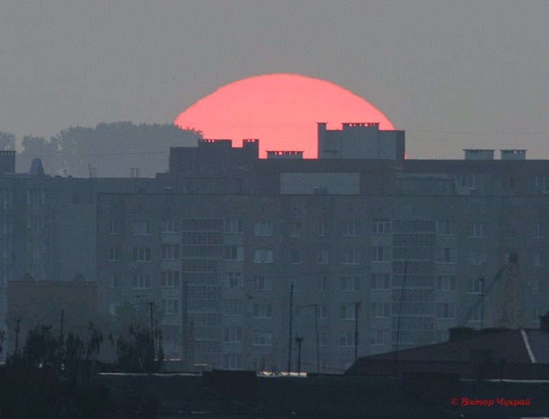 «АМОН-РА, на своїй колісниці, виїзджає на небесний пруг над Луцьком...День розпочинається...(так древні єгиптяни 4000 тис років тому, описували схід Сонця)», – підписав Віктор Чухрай фото.