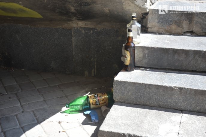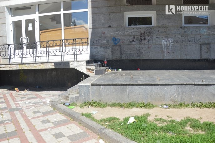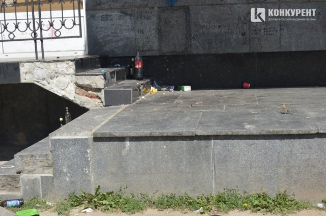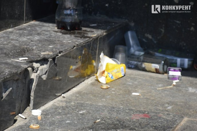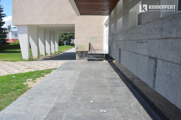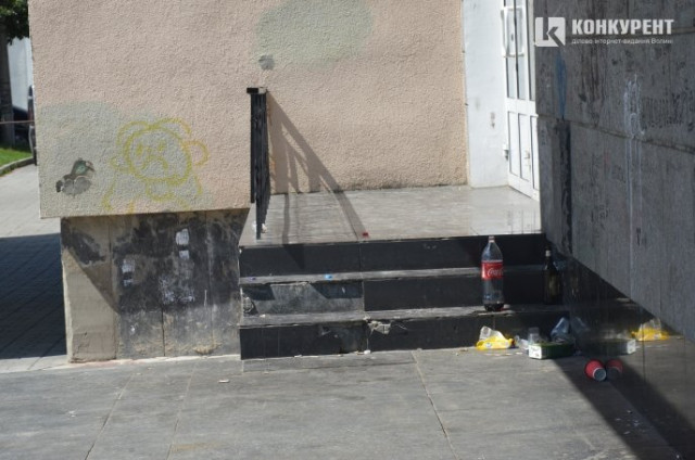 Під стінами Волинського академічного обласного українського музично-драматичного театру невідомі залишили пусті пляшки з-під алкоголю, використані серветки та пачки з-під цигарок, пише Конкурент.