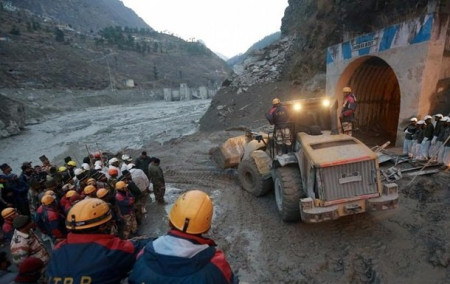 Частина людей виявилися замкненими в 2,5-кілометровому тунелі поблизу однієї з гребель. Рятувальникам вдалося звільнити 12 з них. Припускають, що в тунелі перебуває ще не менше 34 осіб. Представники влади сподіваються, що ці люди ще живі, хоч у контакт з ними вони не вступали. Для проведення пошуково-рятувальних робіт задіяно спецтехніку.Унаслідок сходження льодовика на висоті 2 000 метрів було сильно пошкоджено дві електростанції, а також п’ять мостів. Бурхливий потік з води, мулу, криги та каміння зніс також низку будинків та частини доріг. Оскільки цей потік спричинив повінь, то влада штату була змушена евакуювати людей з декількох поселень, розташованих нижче за течією річки Дхауліганге, куди зійшов льодовик.