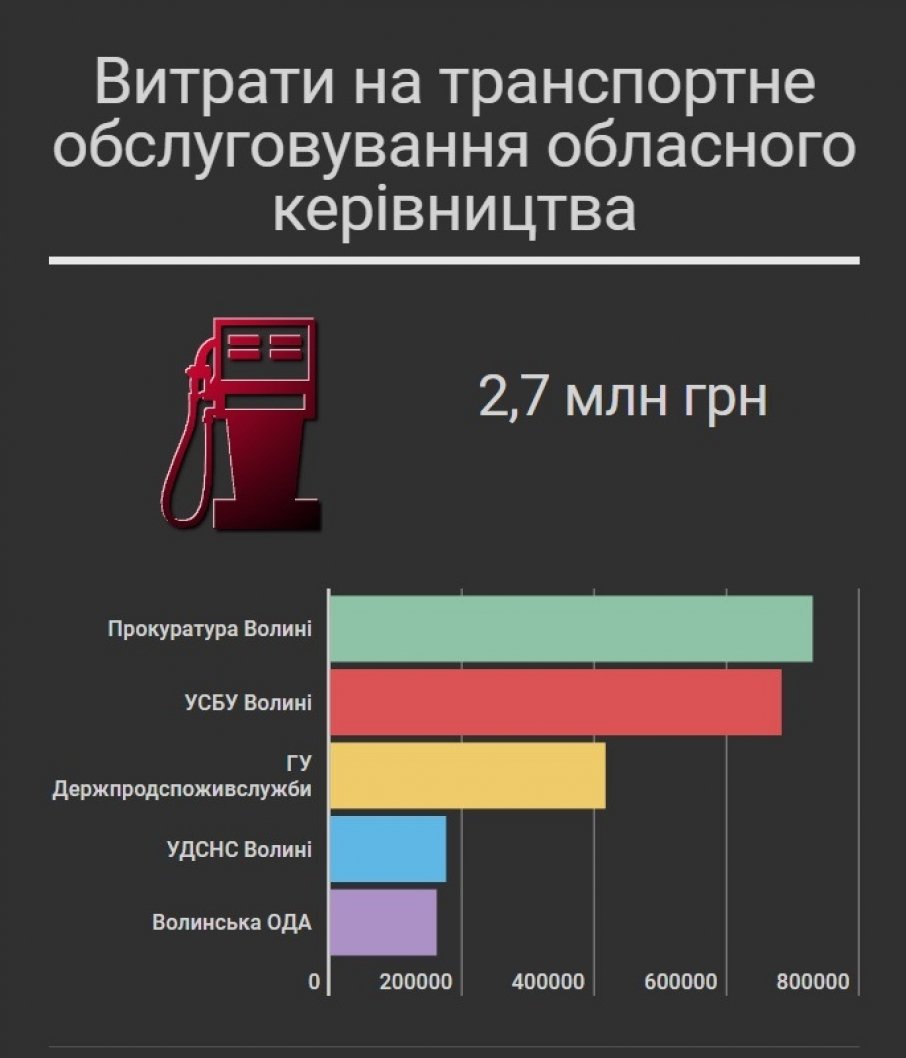 Транспортне обслуговування керівництва ОДА і Волиньради, яке було серед лідерів до Євромайдану, коштувало бюджету відповідно 161 тис грн. і 101,3 тис грн.