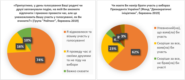 Приблизне уявлення можуть дати результати іншого опитування, проведеного на початку березня 2019 року перед першим туром президентських виборів. Тоді близько чверті громадян розповіли, що віддають перевагу дозвіллю, або вагаються, чи взяти участь у голосуванні, чи витратити час на дозвілля.