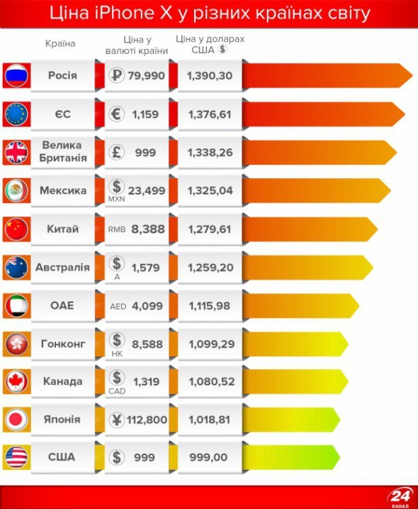 Детальніше про ціна на iPhone X у різних країнах – дивіться у інфографіці: