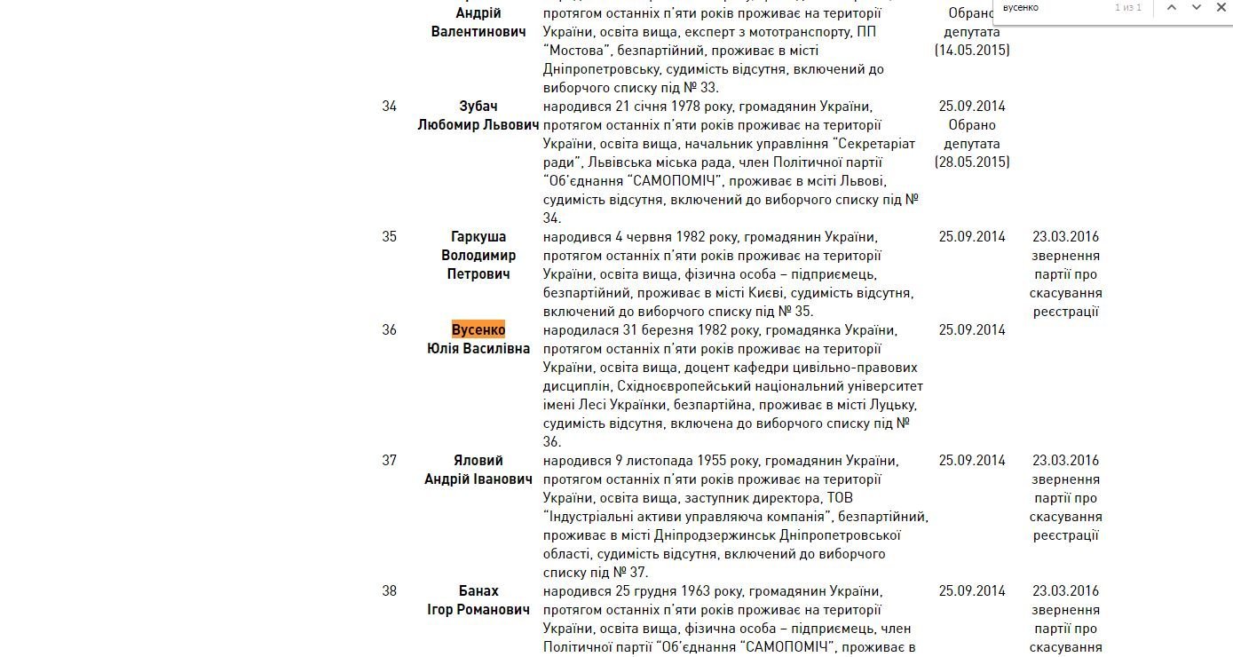 «Ціна питання» для Юлії Вусенко – мандат депутата Верховної Ради?