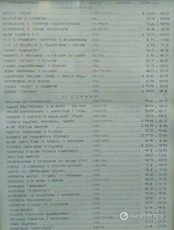 У їдальні Верховної ради можна зустріти як квашену капусту за 15 гривень так і філе осетра за 285 гривень.