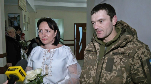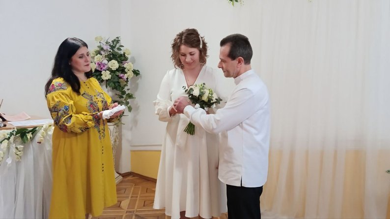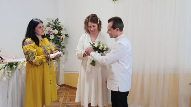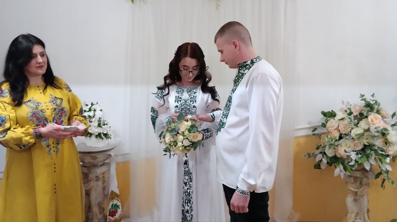 «Хлопці такі молоді, приходять з передової, часом з тими рюкзаками сюди приходять. Бігом, бігом, бо вже їдуть назад... Мабуть, найемоційніші не пари, а сама реєстрація і весілля, тому що сліз дуже багато», – сказала обрядовиця.Також цього дня стали подружжям Ольга і Микола Радчуки. Пара – із міста Ківерці, разом шість років. Наречений з квітня 2022 року захищає Україну та служить гранатометником у 65-тій окремій механізованій бригаді на Запорізькому напрямку.