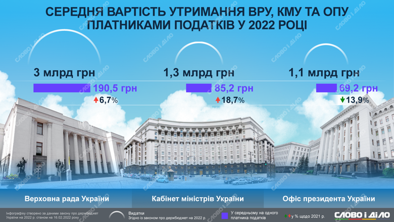 «Слово і діло» проаналізувало, скільки на утримання парламенту, ОПУ та Кабміну в 2022 році передбачили коштів у державному бюджеті й скільки це коштуватиме платникам податків.