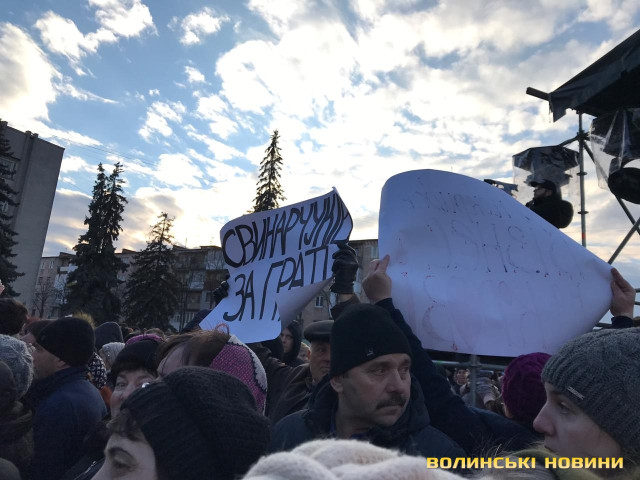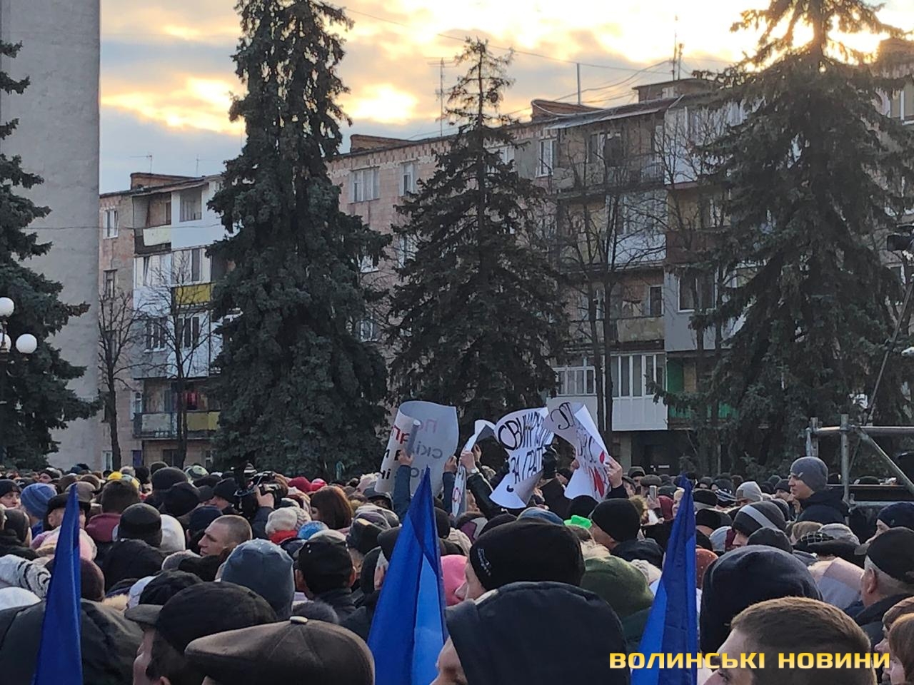 Нагадаємо, зі схожими плакатами, які згодом розірвали старші жінки, до президента прийшли і у Луцьку, проте туди він поки так і не прибув.Зауважимо, до сцени пропускають людей, яких спеціально звезли автобусами, за списками. Решту ж відтіснили металевим парканом.
