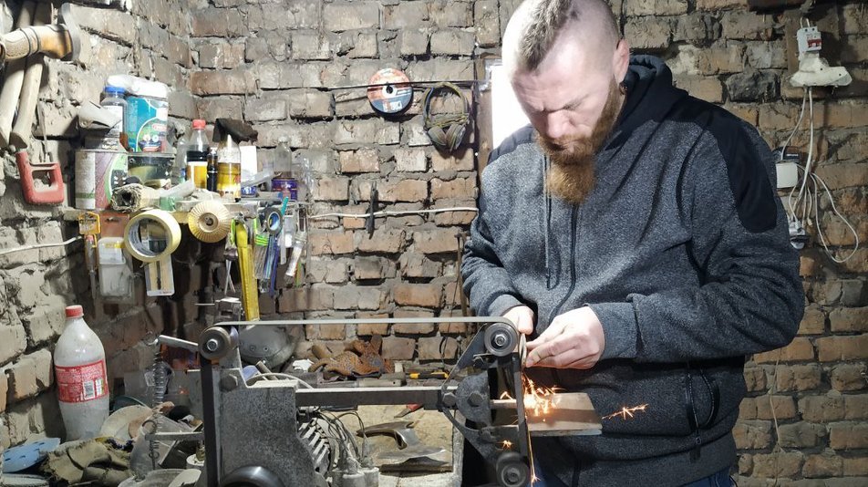 «Чесно зізнаюся – два тижні вживав алкоголь. Потім вирішив, що треба чимось займатися. Валялася залізяка і я просто на коліні зробив таке щось. А фото виставив у ФБ. І одразу мені написали – скільки вартує?» – розповідає Павло.Першу сокиру боєць продав, а далі через соцмережі став отримувати й інші замовлення. Його роботи є у Чехії, Ізраїлі, Італії, Іспанії, США та Німеччині. Каже: періодично до нього звертаються росіяни, але з ними не співпрацює з принципу.