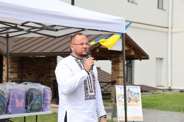 «Шановні дорослі, дорогі діти, я вітаю вас із Днем Державного Прапора та святом, яке відзначатимемо завтра, – Днем Незалежності України. У ці дні ми згадуємо усі покоління українців, які боролися за нашу свободу, йшли під синьо-жовтим стягом до Української державності та віддавали життя. Я дякую усім захисникам та захисницям, які дають можливість нам жити тут відносно мирне життя, а діткам іти до першого класу.Дітки, ці рюкзачки, які ми вам вручаємо, – це подарунок, що символізує нашу гідність та любов. Бажаю, щоб ваше навчання в школі було цікавим, щоб ви отримали ті знання, які допоможуть вам стати успішними у майбутньому. Бажаю, щоб ви зустріли нових друзів, щоб 1 вересня другого вашого класу було вже у мирній, успішній Україні», – звернувся до присутніх Ігор Поліщук.