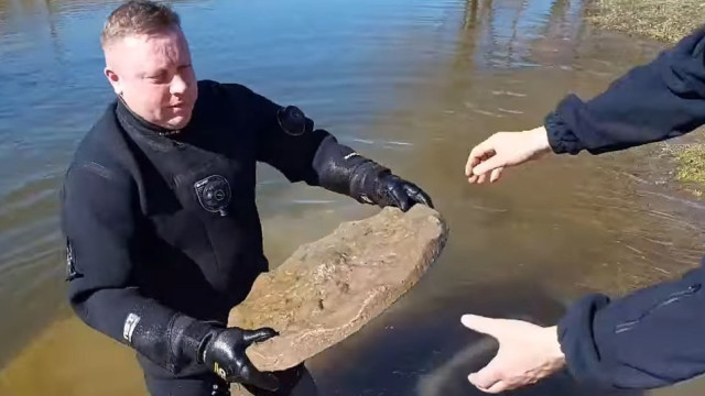 З річки Стир водолази дістали дві з трьох робіт луцького скульптора Миколи Голованя, які невідомі кинули у воду.