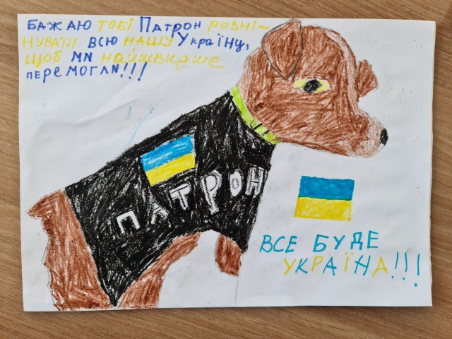 Посилка зі смаколиками, дитячими малюнками та плюшевим песиком-копією, яку пошили на волинській фабриці іграшок «Тигрес», дісталася Чернігівщини. Там разом із господарем Михайлом Ільєвим мешкає улюбленець дітей та дорослих пес-сапер Патрон.