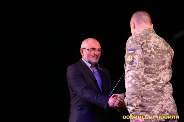 «Велика вам вдячність за вашу службу, за захист нашого спокою. Свято захисника вітчизни має великий історичний корінь – День Покрови святкували козаки, вона була покровителькою козацтва. На Волині створювалася Українська повстанська армія, її воїни не мали ні нагород, ні почестей, але вони зберегли свою честь і через багато років, коли Україна стала незалежною, здобули славу. Сьогодні Україна переживає нелегкі часи, Волинь понесла дуже великі втрати. На початку війни 51-ша бригада одна з перших стала на захист вітчизни. Важко дивитися в очі вдовам, які тримають на руках дітей, які ніколи не побачать своїх батьківю Але ми впевнено відстоюємо свою незалежність. Бажаю вам, щоб наші кордони стали такими, як до війни», - привітав військових Роман Карпюк.Виконувач повноважень міського голови Григорій Пустовіт, своєю чергою, наголосив, що у залі зібралися ті, для кого слова «захист України» не є порожнім звуком.