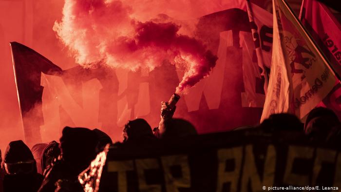 «Мітингувальники кидали у поліцейських петарди, одна влучила полісмену просто в обличчя», – пише видання.Закидали правоохоронців петардами і пляшками активісти «Чорного блоку», які приєдналися до демонстрації.