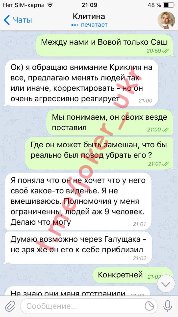Також Клітіна з готовністю відреагувала на пропозицію зустрітися наодинці з президентом, щоб покритикувати роботу свого начальника, міністра інфраструктури Владислава Криклія.