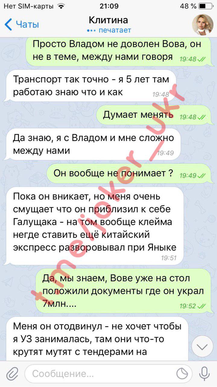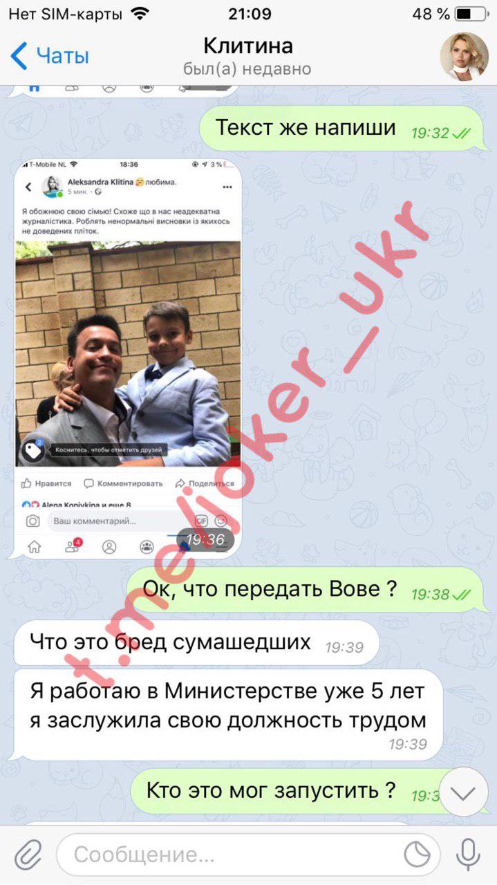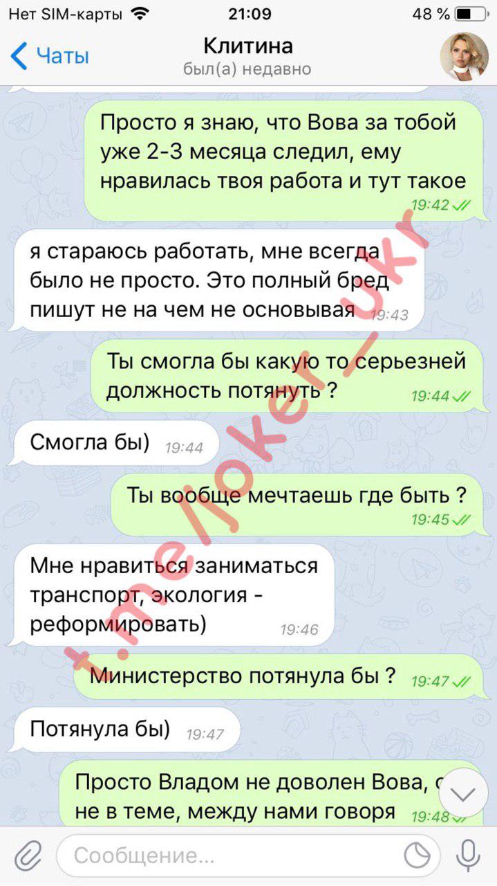 Пранкер Джокер опублікував переписку з заступницею міністра транспорту та інфраструктури Олександрою Клітіною, яка стала відомою тим, що нібито отримала свою посаду через ліжко.