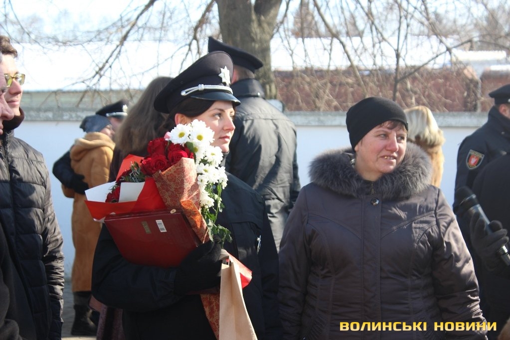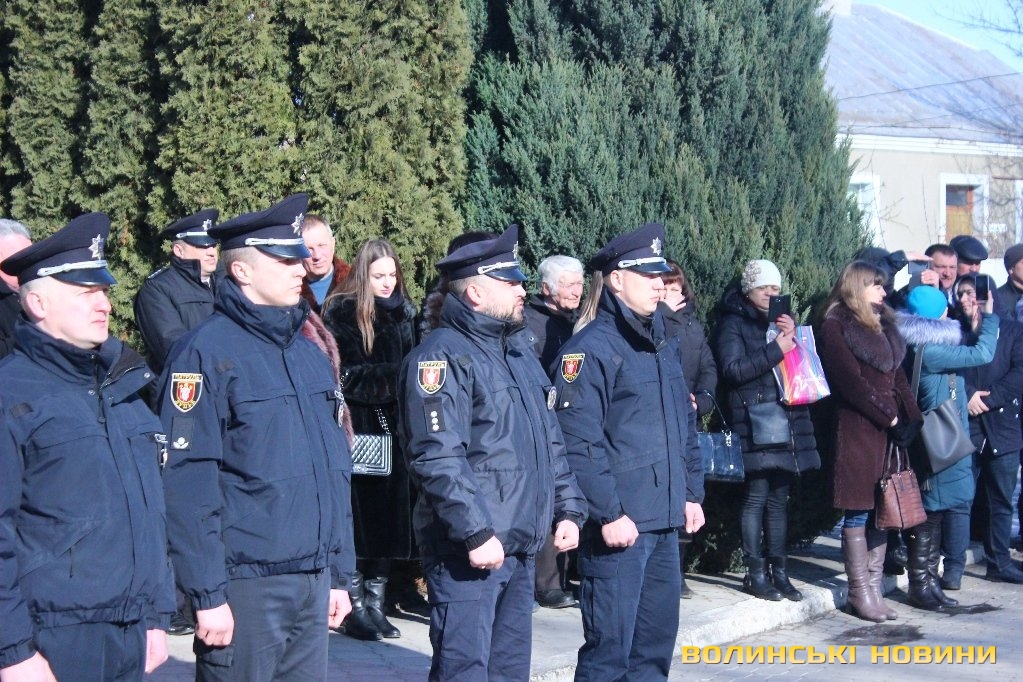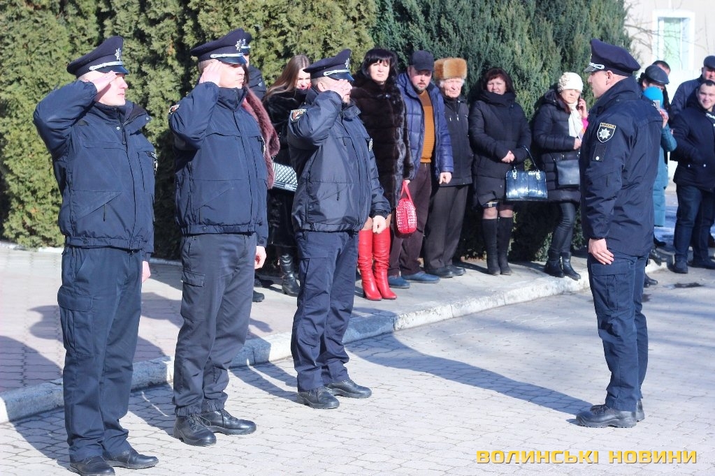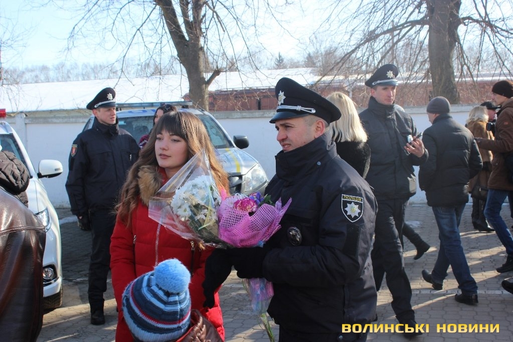 «Сьогодні цей день, мабуть, для вас найважливіший, оскільки ви стаєте на ту дорогу, яка не є легкою. На ній ви зустрічатимете багато негативних та позитивних моментів. Вся наша служба заключається в тому, що з тортиками нас ніхто не зустрічає, а здебільшого ми надаватимемо допомогу тим людям, які потрапили в небезпечні ситуації. Хочу побажати вам сталевої витримки та проявляти характер, з яким ви пройшли навчання, адже цього від вас очікують люди та ваші рідні», - звернувся до патрульних Олександр Вовченко.Своєю чергою, заступник начальника Управління патрульної поліції Дмитро Хмарук побажав патрульним успіху, наснаги та міцного здоров’я. Також він подякував їхнім рідним та близьким..Заступник начальника Управління патрульної поліції у Волинській області Роман Буховець додав до привітань, що йому приємно бачити нові обличчя та нову надію Луцька та Ковеля. Він побажав новоспеченим патрульним терпіння та професіоналізму.Опісля привітальних слів присутні вшанували Героїв Небесної Сотні хвилиною мовчання.На завершення родичі та близькі патрульних, які склали присягу, могли зробити з ними фото.Нагадаємо, у грудні ряди патрульних поповнили 46 людей.