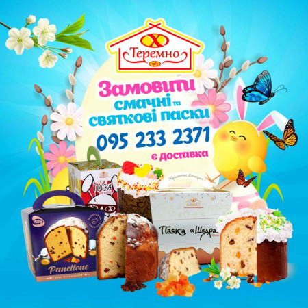 «Теремно Хліб» пропонує вам до святкового столу цікавий пасхальний асортимент випічки. А також запускає персональну доставку пасочок просто до Вас додому.