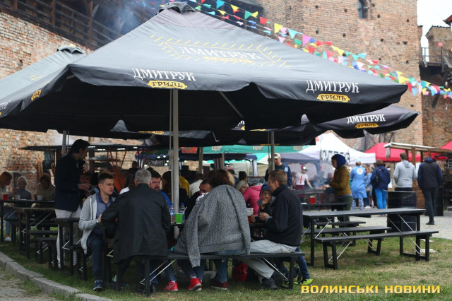 Незважаючи на не зовсім сприятливу погоду, до Луцького замку поспішають лучани та гості міста, аби посмакувати хмільними напоями та спробувати смачні страви, приготовані на грилі.