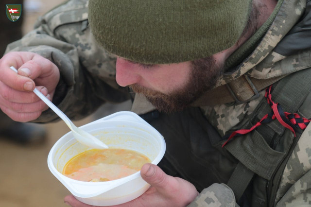 На обід та відпочинок військові мають хвилину між важкими боями. Чим смакують воїни – показали у мережі.