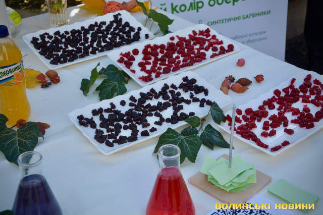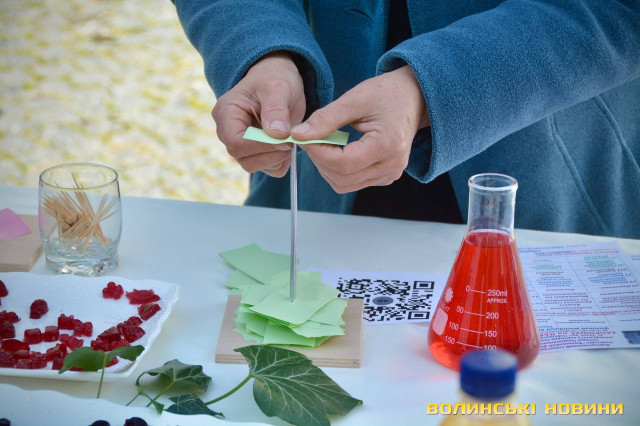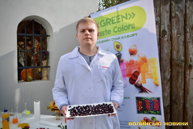 «Це дегустаційні проби – крафтові цукерки, зроблені на основі концентрату чорниці або синтетичного барвника. Люди дегустують і обирають той варіант, який їм більше до вподоби. Беззаперечним лідером є натуральний барвник», – сказав Данило.Також на цій локації можна було проекспериментувати, наприклад, природу барвника у продуктах і спостерігати, як змінюють відтінки натуральні барвники залежно від середовища.На локації цифровізації працював викладач фахових дисциплін коледжу НУХТ Артем Кавара.