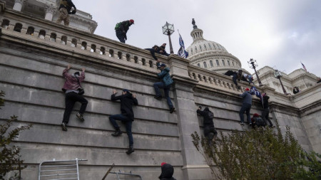 На кадрах зафіксували момент, як прихильники Дональда Трампа виламують вікна, щоб проникнути в будівлю Конгресу.
